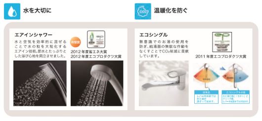 水まわり商品は「まいにち必ず使うもの」「みんなが必ず使うもの」。それだけに日々の小さな積み重ねが地球環境へ大きな影響を与えます。そのためTOTOグループでは、毎日の暮らしの中で知らず知らずのうちに地球環境を守ることを目指しています。