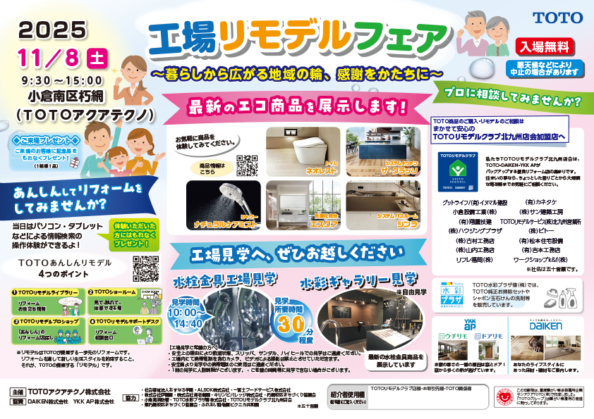 2025年11月8日(土)に工場リモデルフェアを開催いたします。皆さまのご来場をお待ちしております。