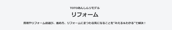 「良品の供給が何よりも大切」という理念のもと、私たちTOTOアクアテクノは、 お客様に「あんしん・安全」な商品をお届けしています。TOTOあんしんリモデルは、お客様の目線に立って、知りたい情報を「みえる」ようにし、それによって「わかる」という「あんしん」をお届けする活動です。 お客様に「あんしん」してリモデルしていただけるよう、TOTOアクアテクノ社員全員が「あんしんリモデル」の意志を持ち、行動しています。