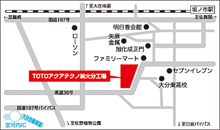 TOTOアクアテクノの生産拠点は、小倉工場、大分工場の国内2工場です。