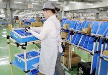 納入された部品を製品群毎に決められた場所に保管します。